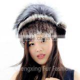 CX-C-244C Ladies Fashion In Stock Hats Rex Rabbit Fur And Sliver Fox Fur Hat Cap