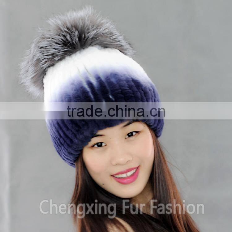 CX-C-02F Lovely Custom Beanie Hat Fashion Handmade Rex Rabbit Fur Hat