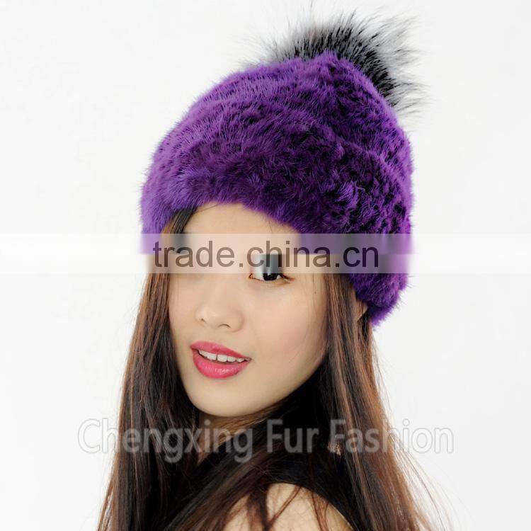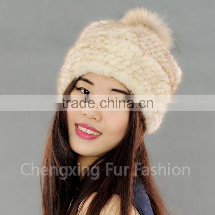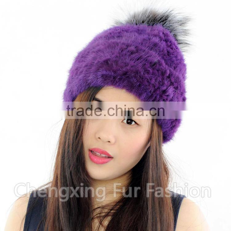 CX-C-221P Wholesale Girls Fashion Fur Ball Hat Women Mink Fur Knitted Beanie Hat