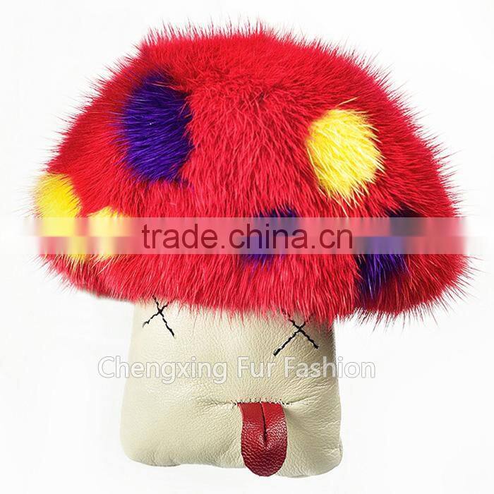 CX-R-01 Mink Fur Mushroom Mobile Phone Strap Custom Key Ring