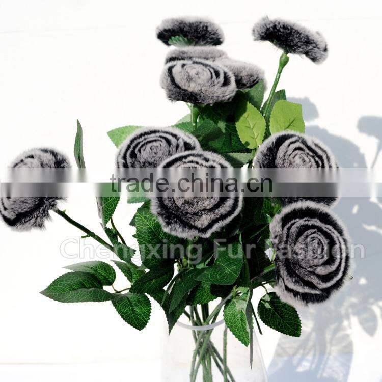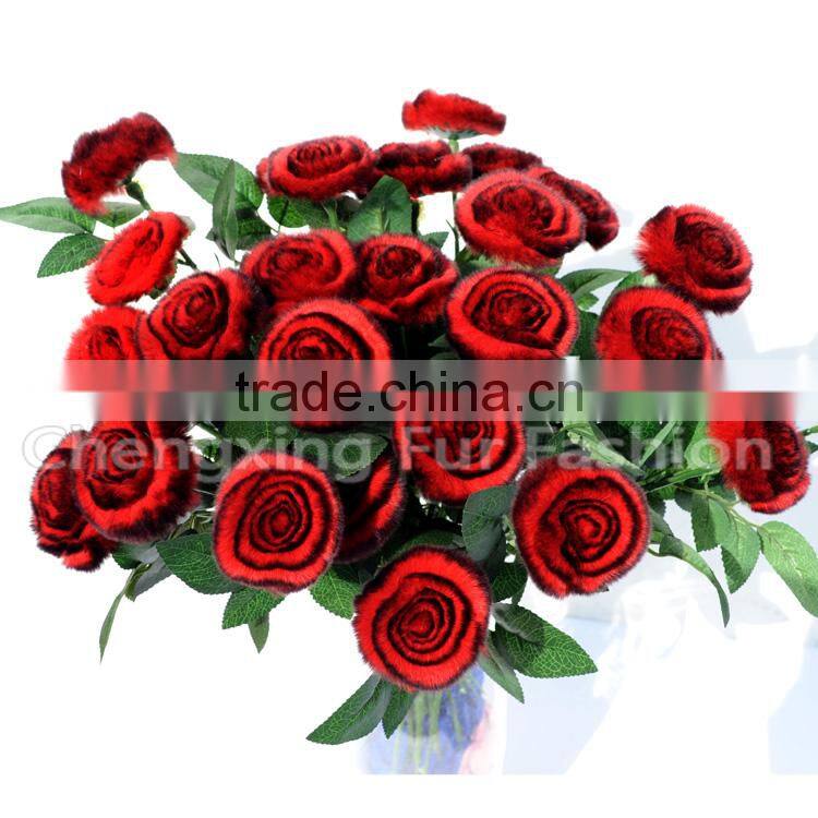 CX-A-69A Red Rose Rex Rabbit Fur Flowers Hand-made Flower Livingroom Decoration