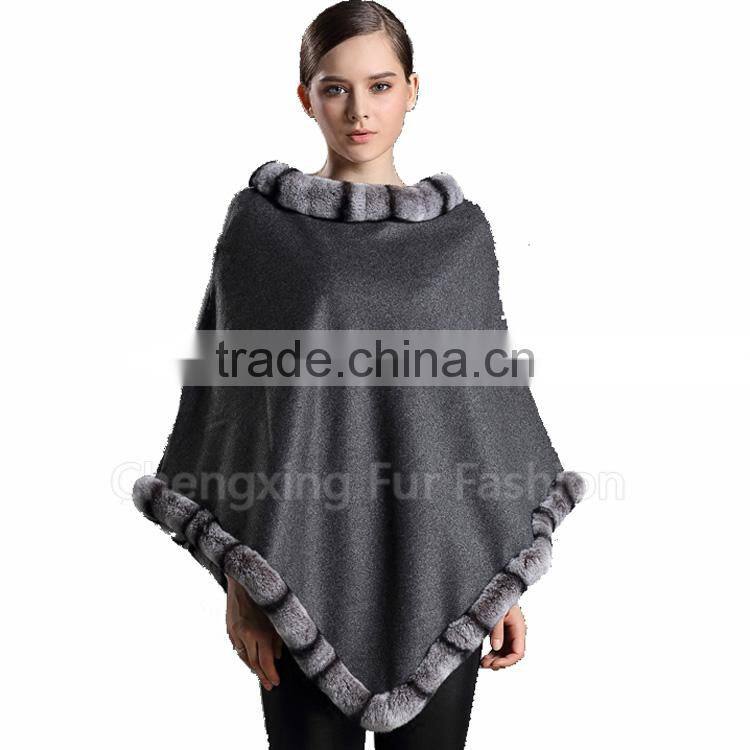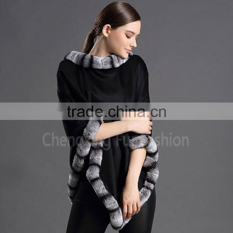 CX-B-P-58A Fashion Super Quality Latest Genuine Rex Rabbit Trim Pashmina Shawl