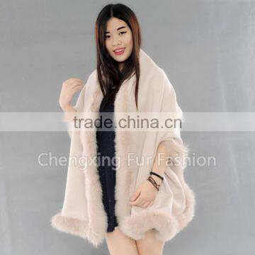 CX-B-P-25E Factory Wholesale Women Pashmina Cashmere Fur Trim Cape