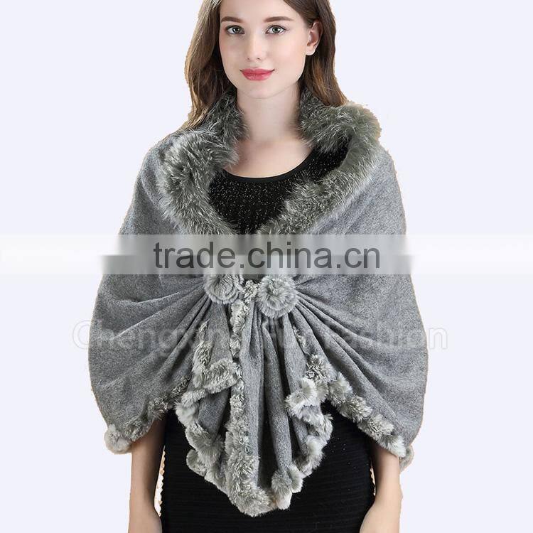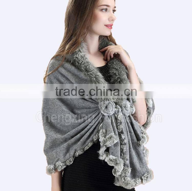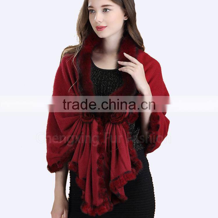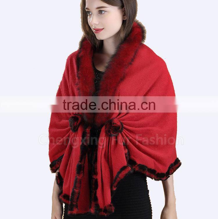 Fox Fur Trim Multi Style Fashion Cashmere Shawl With Fur