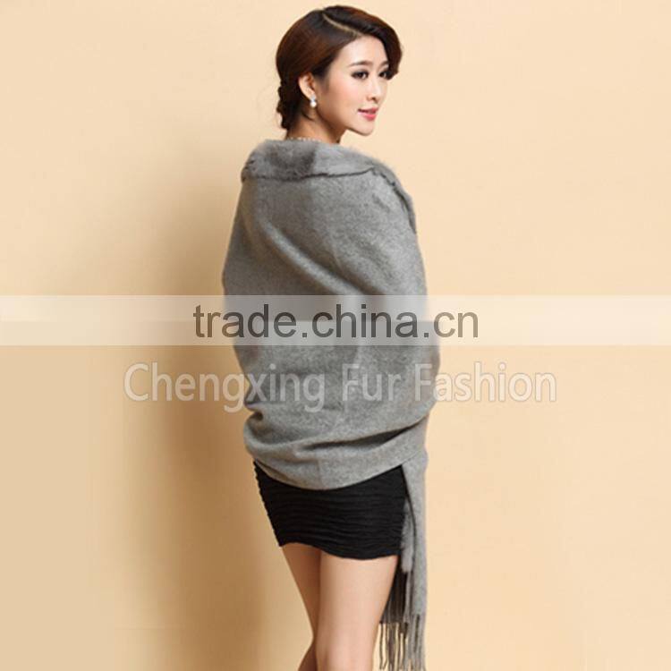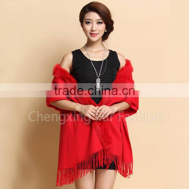 CX-B-P-41C Fur Decora Fashion Women Plain Cashmere Pashmina Scarfs