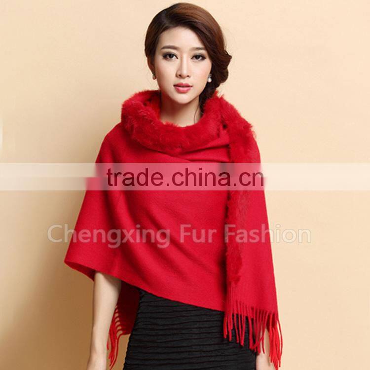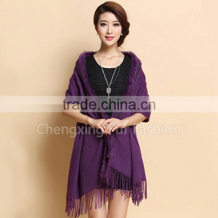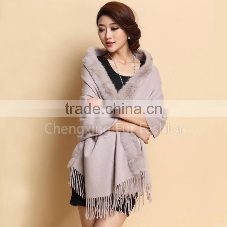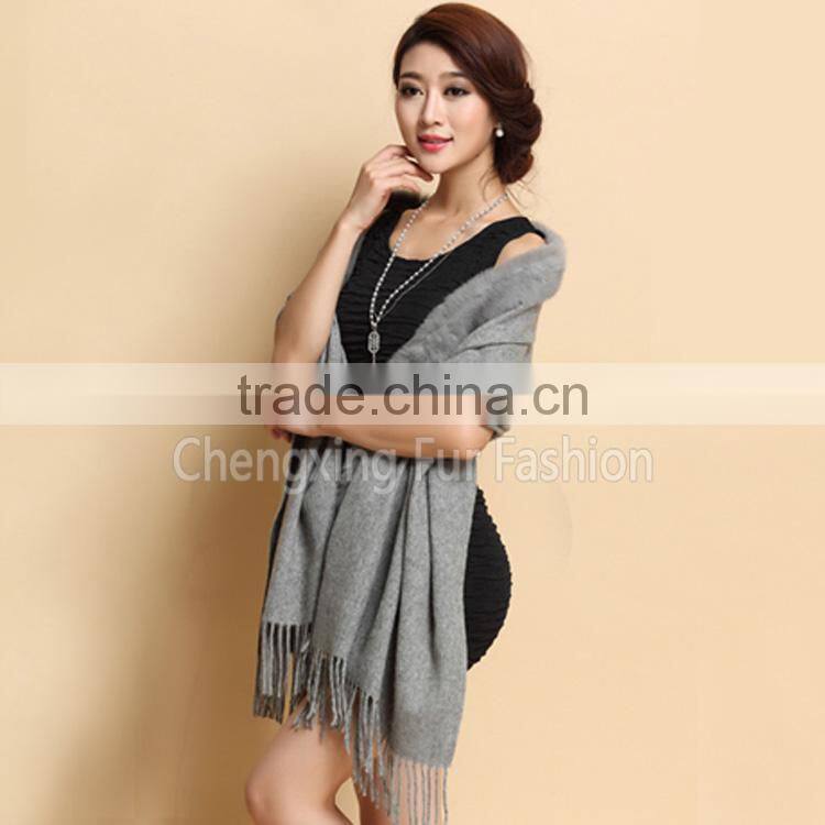 CX-B-P-41D Fur Trim Decora Fashion Women Plain Pashmina Shawl With Fur