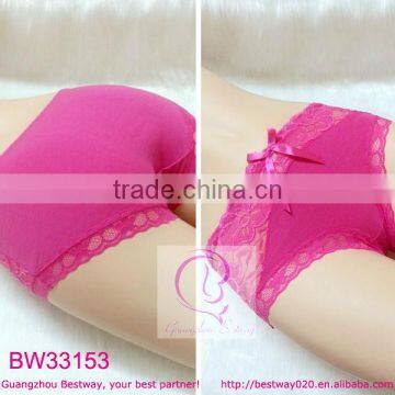 Ladies cotton full briefs pink color with lace decorated1. Sof cotton fabric, sold color, with lace trim
