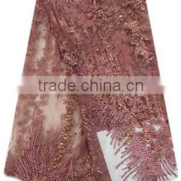 Shanghai Bestway Fashionable Shiny Textile Material Fabric French Lace Fabric Nice Tulle Lace With Sequins and Beads FL1395