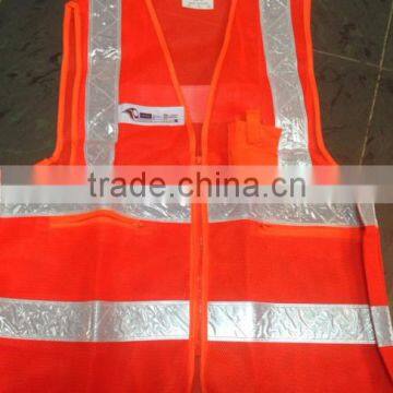New Design Orange Mesh Reflective Vest White Ruban Vest Zipper Vest