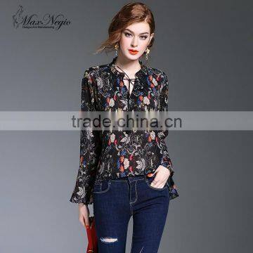Maxnegio Lotus leaf sleeves blouse neck designs cutting fashion design lady blouse |