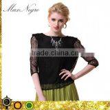 Hot Selling Chiffon Fabric Black T-shirt Fashion Lace Blouse on Sale