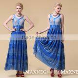 2015 Maxnegio Simple Blue Long Maxi Evening Dress