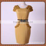 Retail Selling Beautiful Dress Lace Cocktail Yellow Dresses