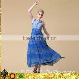 Wholesale Fancy High Quality Blue Long Maxi Satin Dresses Beach Dress