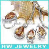 Top Quality Champagne Water Drop Crystal Pendent and Earrings