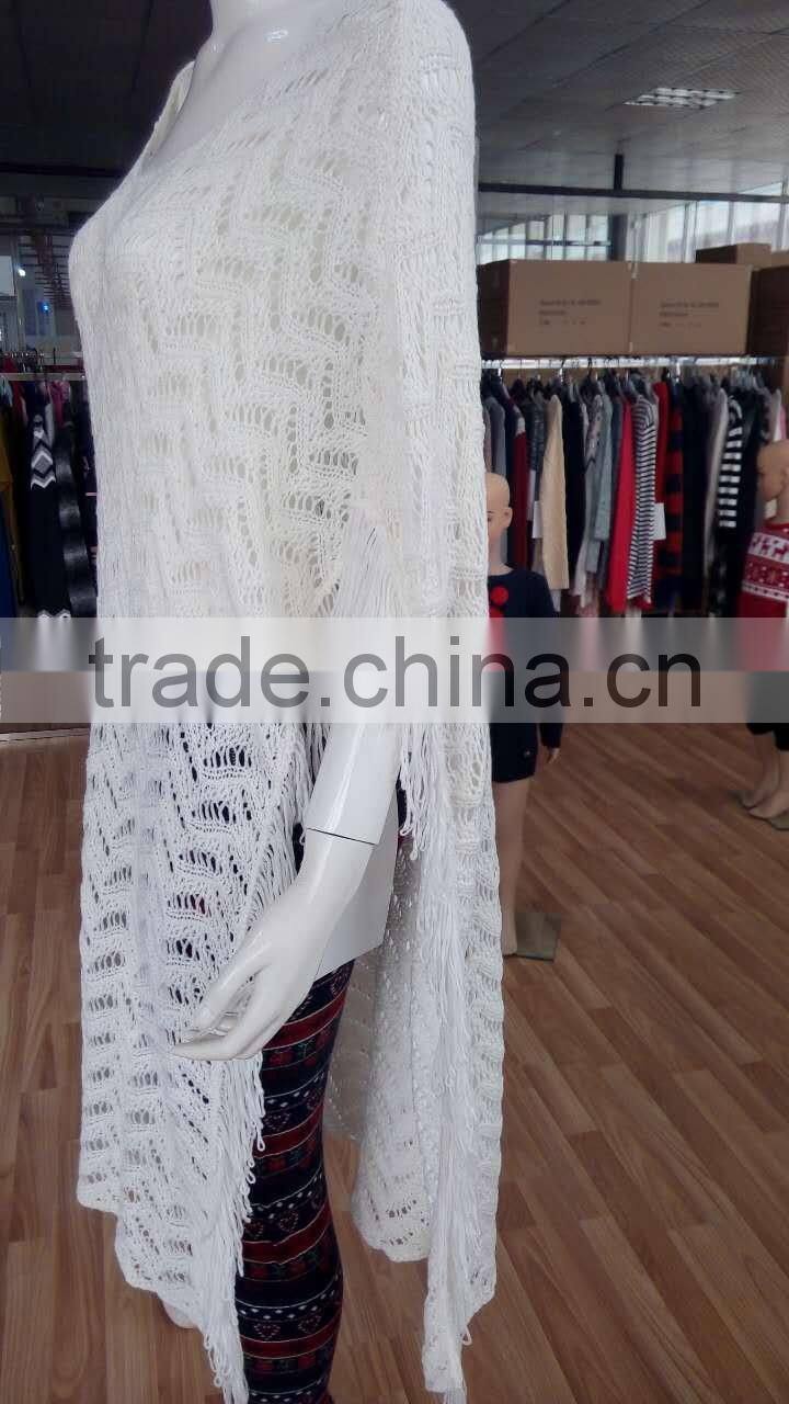 Wholesale Custom Fashion Apparel Woman Beautiful Wrap Front Cardigan Tassel Fringe Trim Designer Cardigan Sweater New Arrival(LS0515)