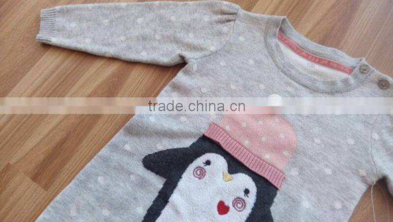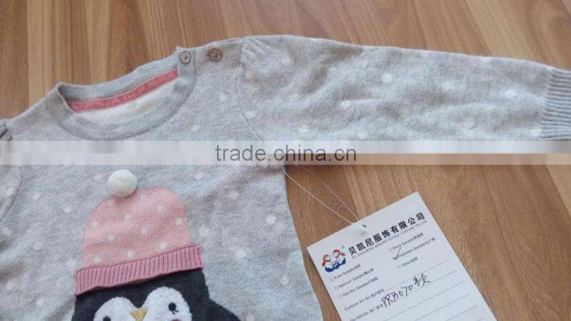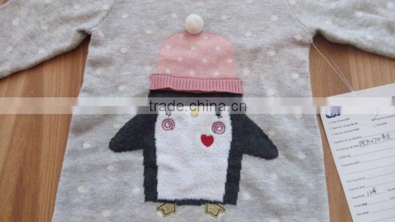 2017 Stylish Kids Girls Sweater Grey Animal Long Sleeve Sweater With High Neck Pullover Sweater (W63)
