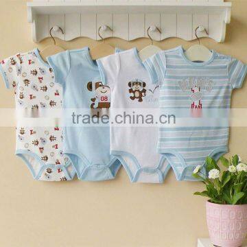 High quality but reasonable pricesFabrics 100% cotton combed, knitted, interlock, 180gsm Sizes 6 9 12 18 24m ratio 1:2:2:2:1 MOQ=40 sets 40 boxes=5 styles*8box per style 8box per style as belows: 6m-1box, 9m-2box, 12m-2box, 18m-2box, 24m-1box Pls understand and follow our MOQ and ratio to take all styles and sizes. Styles/colors All 5 styles,as shown in pictures attached lollipop, sheep, monkey, giraffe, truck Process very cute embroider with cartoon animal pattern Labels Main label, care label, washing label, size label, material label Packing 1box/4pcs/one size into a gift box (as attached pictures) send by carton, 1carton=40box=160pcs Feature very comfortable and soft, eco-friendly Sample If samples needed, sample fee and shipping will be charged.