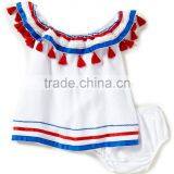New Style Unique Tassels Cap Collars Kids Boutique Girl Clothing Baby Rompers White Cotton Two Pieces Toddler Clothing