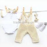 Most Popular 100% Cotton Tops and Beige Shortall Baby Clothes For Kids Boy With Bow Tie