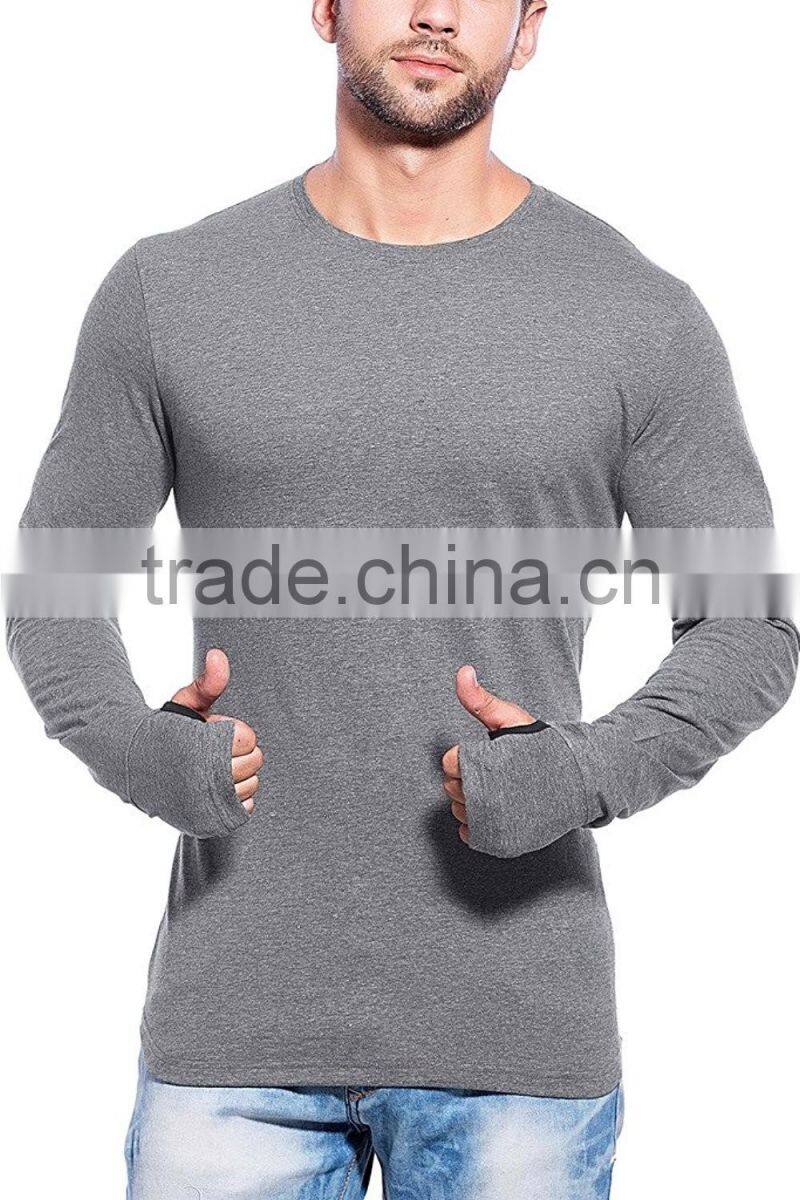 Mens Full Sleeve Round Neck Dark Grey Cotton Tshirt