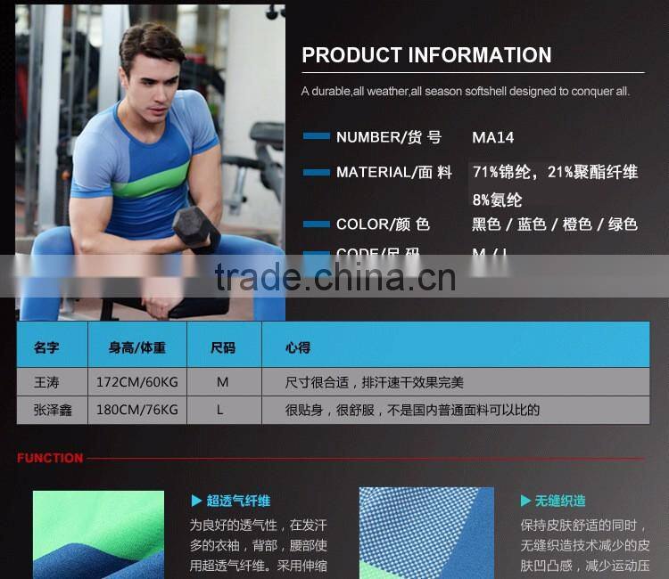 * This compression gym T Shirts are with 71% polymide, 21% polyester, 8% spandex is great for fitness!