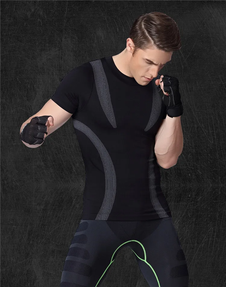 * This compression men's clothing is with 72% polymide, 20% polyester, 8% spandex is great for fitness!