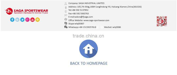 Xiamen Saga Sports Co., Ltd. Founded in 2006, Saga began as a Hong Kong registered trading company. With years of experience, we have invested our factory and expand our business.We are professional in manufacturing sports and casual garments. With advancement technology, scientific management and good service, we assure our partners of competitive price, best quality and on time delivery.
