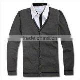 Fashion Fake Two Piece Men's Long Sleeve Cotton Pullover Sweater