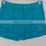 2016 Sexy Ladies Sky Blue Plain Dyed Cotton Shorts for Summer