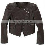 Inclined Zipper PU Casual Jacket Black and Yellow