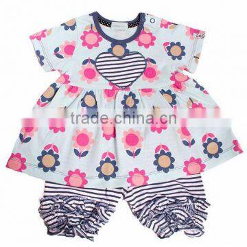 Pretty little girl flower printing dress kids baby bubble cotton rompers