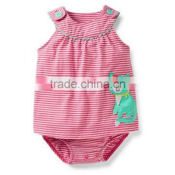 2014 Kids sleeveless jumpsuit baby girl stripe red and white applique rompers one-piece outfit