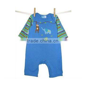 Animal applique baby cotton rompers stripe sleeves infants summer jumpsuit