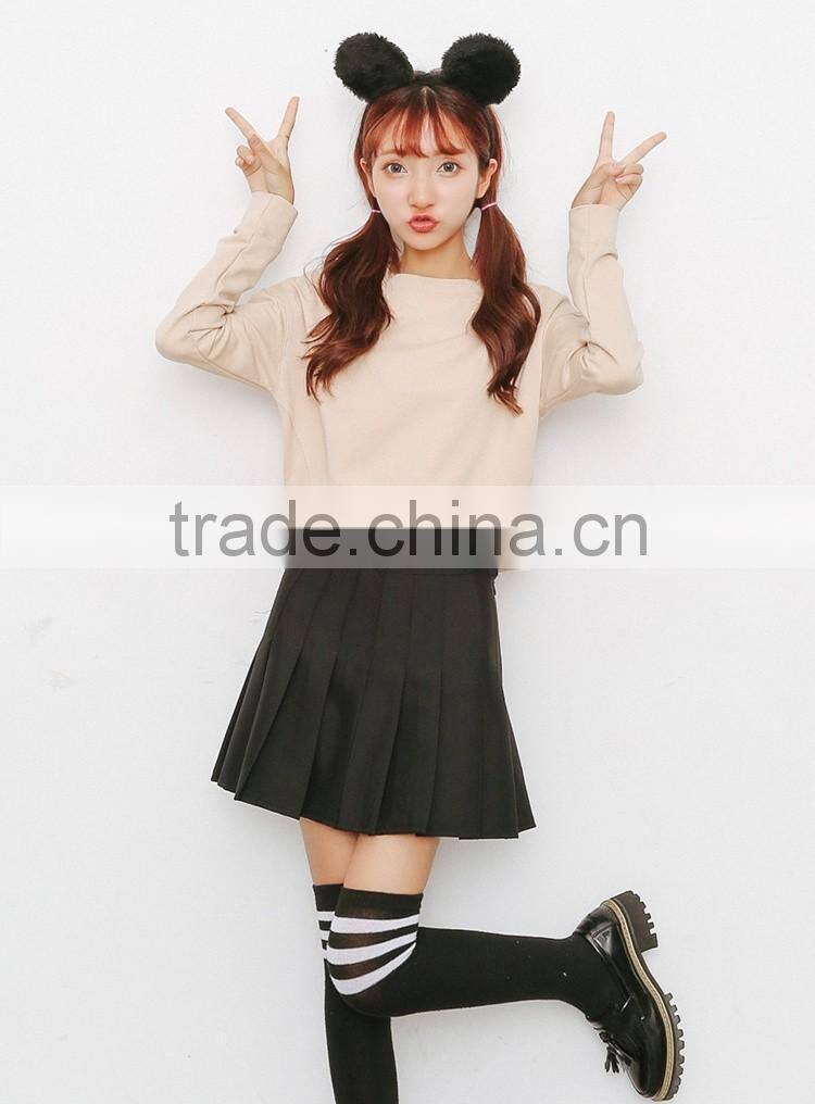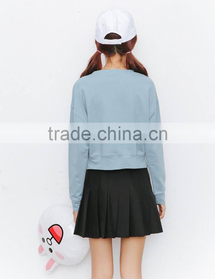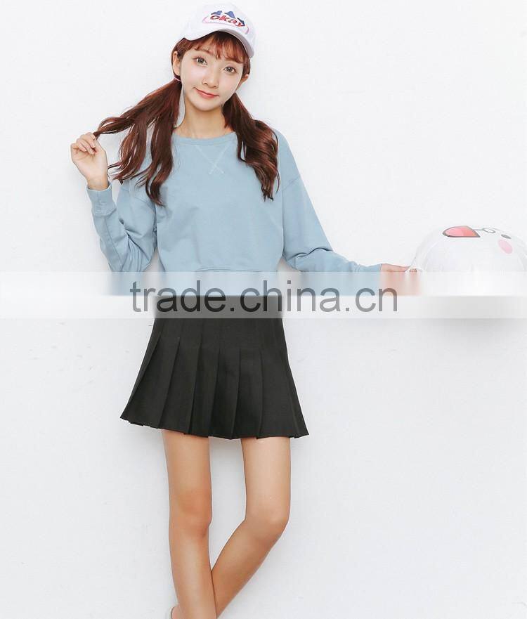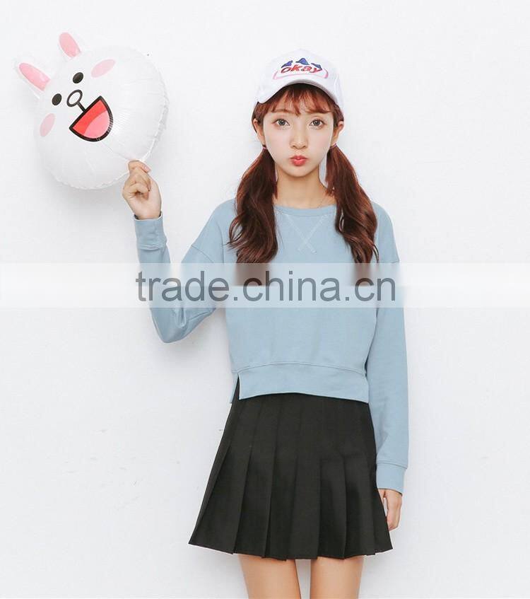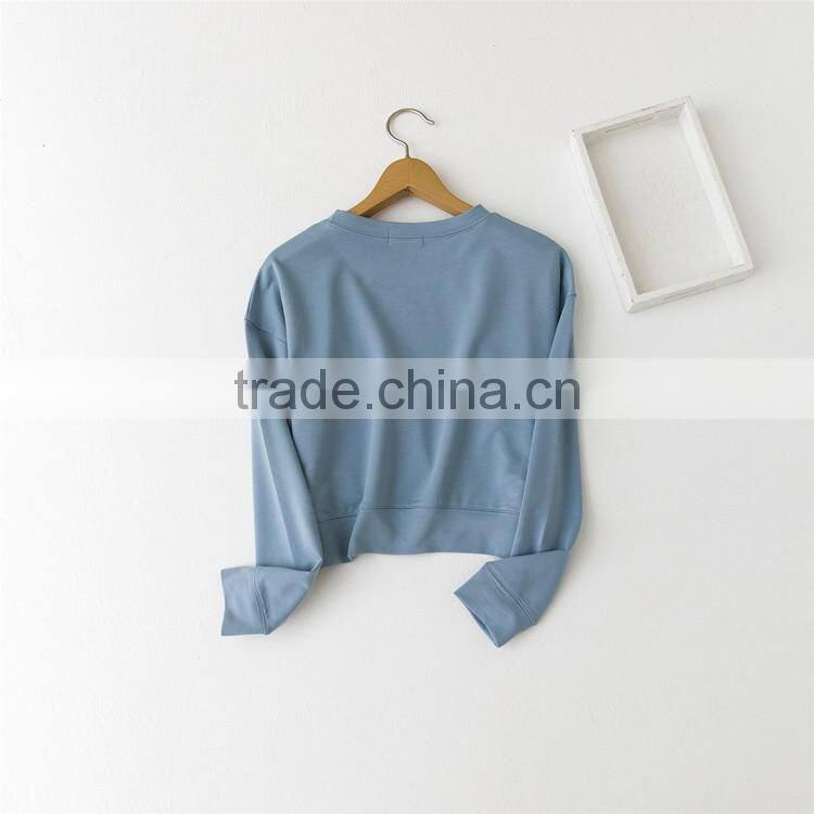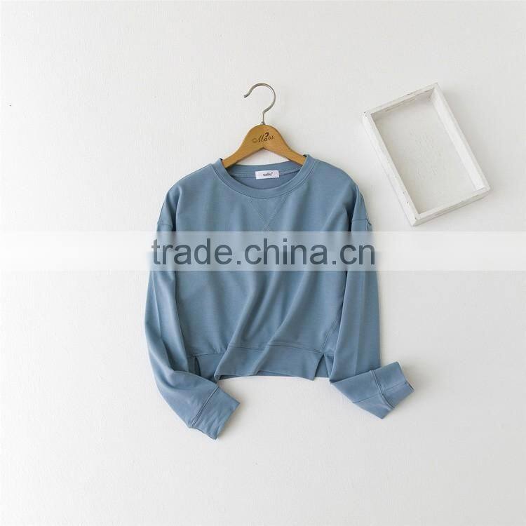 Korea style fall winter leisure pure cotton fleece sweater long sleeve short style and simple pure color sweatershirt