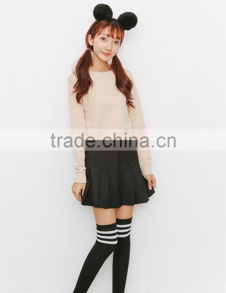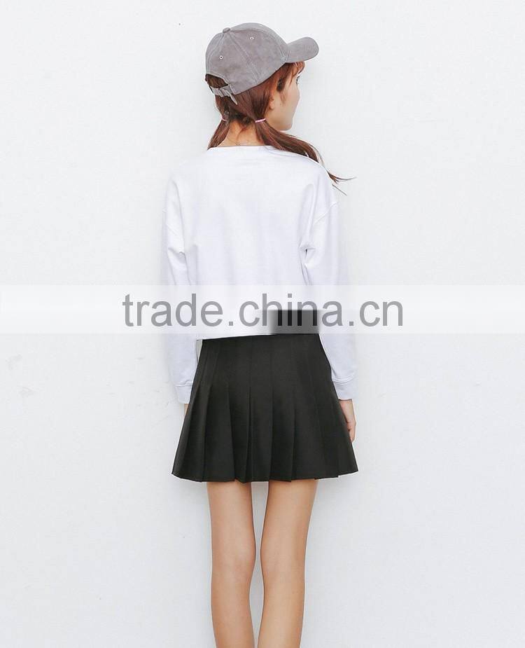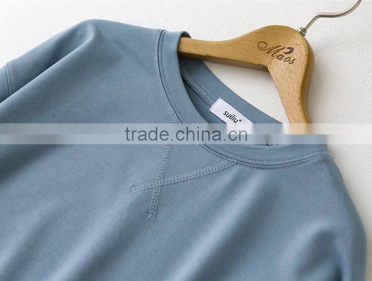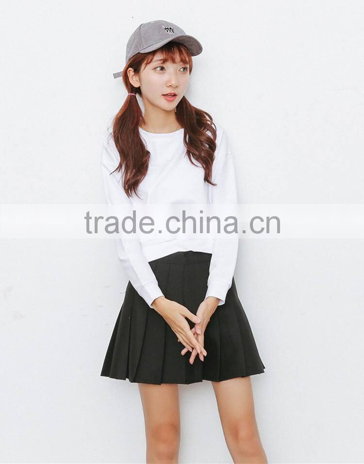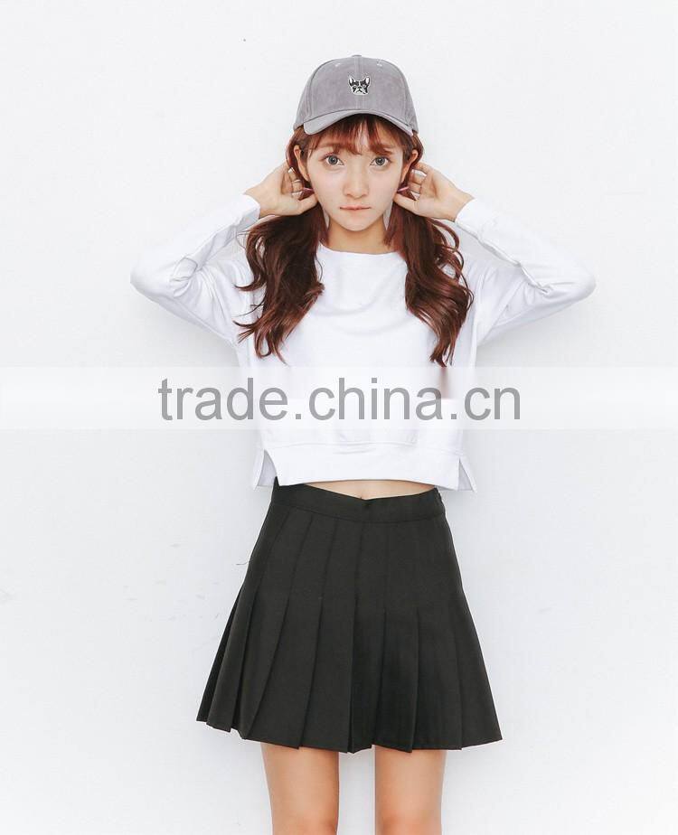Korea style fall winter leisure pure cotton fleece sweater long sleeve short style and simple pure color sweatershirt