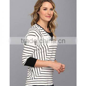 | Product name : | women white black stripe fleece scoop neckline with sweater-stitch at front three-quarter length dolman sleeves sweater fleece |