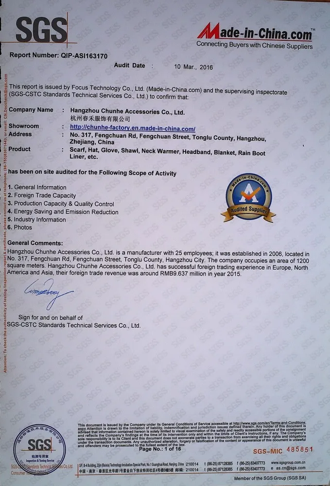 Hangzhou Chunhe Accessories Co., Ltd. is located in China's Knitted Town - Tonglu County of Hangzhou City. More than 20 years ago, we started making and exporting knitted products. We focus on international trends and make us the most competitive knitted product supplier in China.