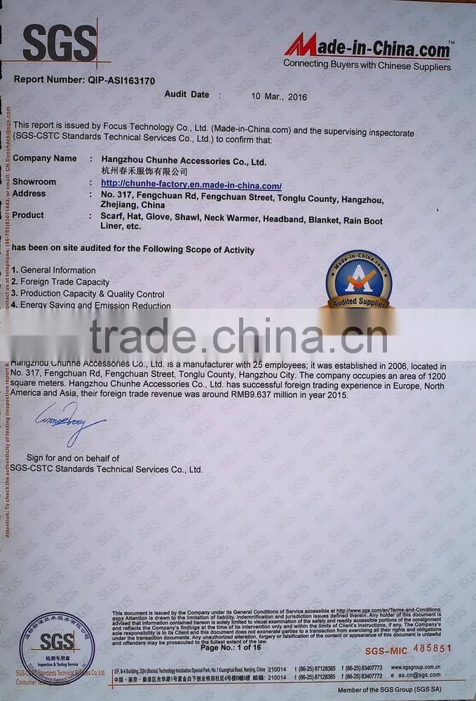 Hangzhou Chunhe Accessories Co., Ltd. is located in China's Knitted Town - Tonglu County of Hangzhou City. More than 20 years ago, we started making and exporting knitted products. We focus on international trends and make us the most competitive knitted product supplier in China.