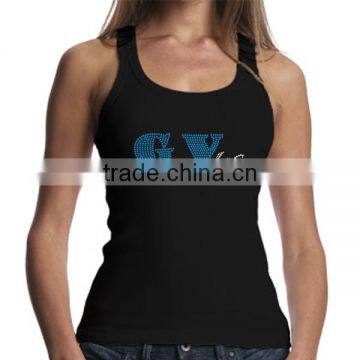 2016 Custom Logo Rhinestone Transfer Design Women Black Tank Top Wholesale China
