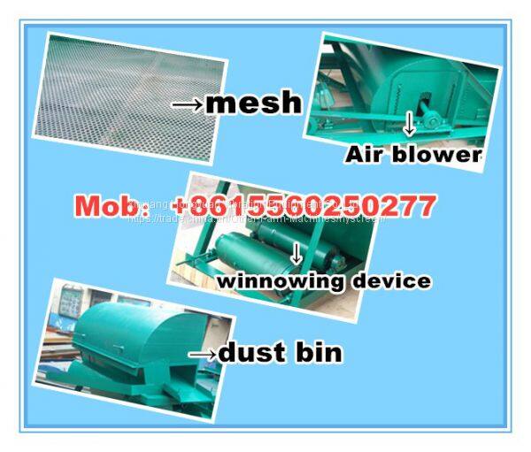 There are three screen decks of this machine. At first,the the front screen will sort out the dust and similar impurities. Then the main fan will suck it out at last part. First screen deck is for the big impurities, second decks for cleaning grain, third decks is for broken grain and sand etc.