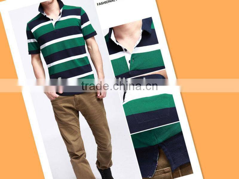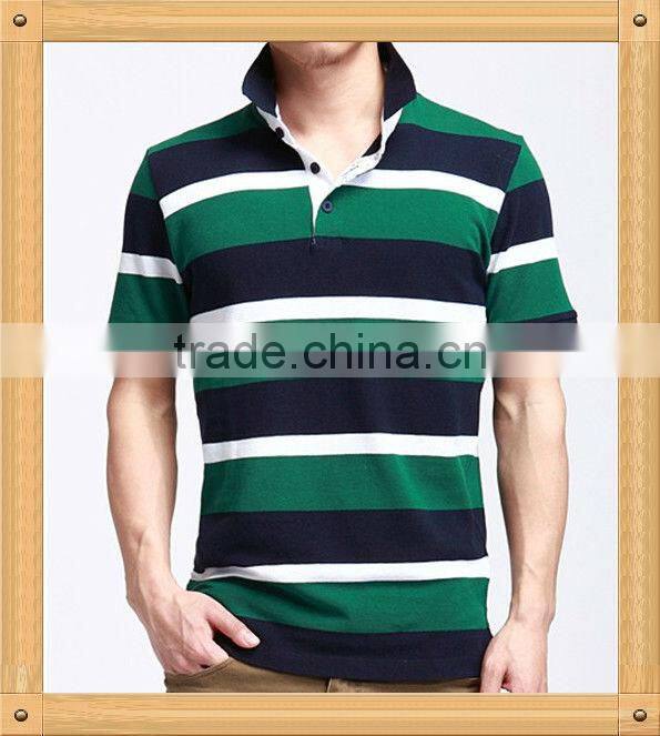 High Quality Men's Cotton Green Striped Polo Shirt Wholesale China