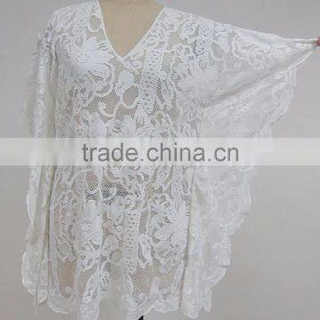 latest fashion western ladies mesh embroidery beach cover casual kaftan:CE9968