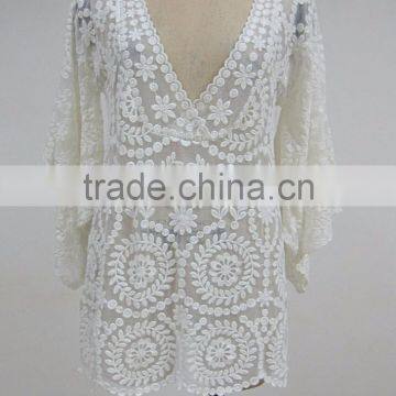 latest western ladies embroidered lace summer beach kaftan:CE9975