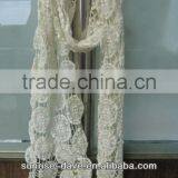 100% Cotton White Crochet Scarf With Beads