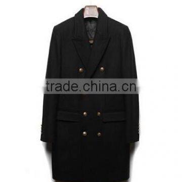 2014 Double-Breasted Metal Button High Fashion Classical Design Black Lapel Slim Fit Mens Cashmere Men Coat