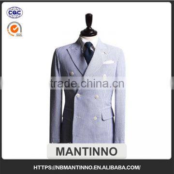 2017 Autumn Winter New Style Light Blue Seersucker Tailored Suits for Men