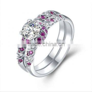 New Arrival Pink Platinum Plated Flower Zircon Party Ring Set for Girl Customized Wholesale