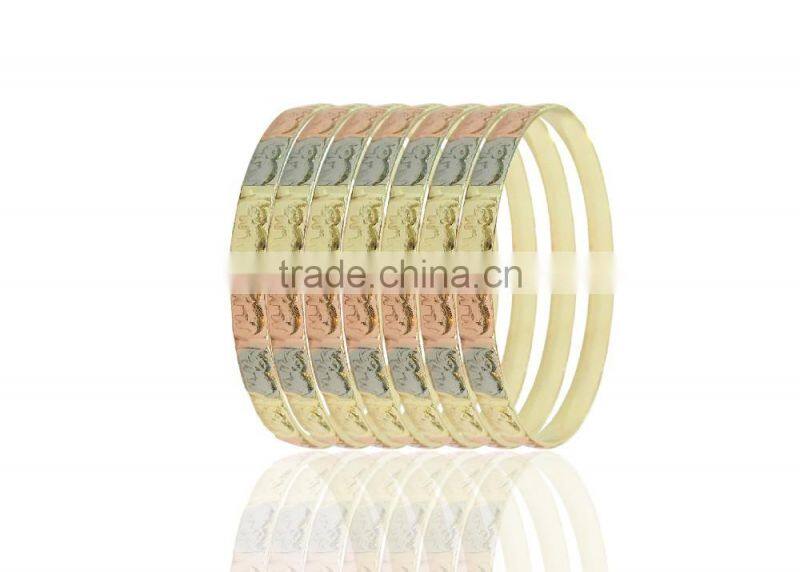 14Kt Gold Plated Three Tone Set of 7 Bangle Bracelet