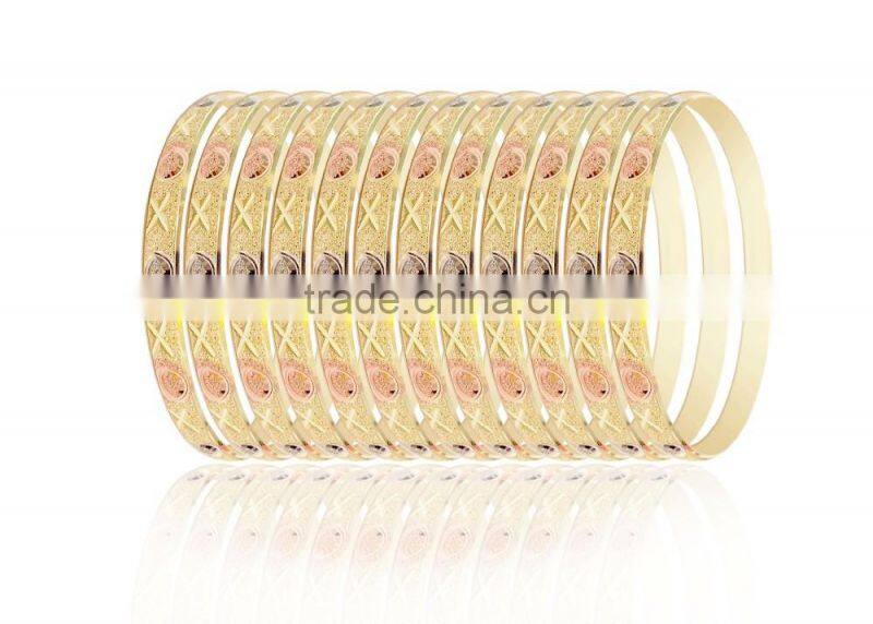 14 kt Gold Plated Three Tone Diamond-Cut Set of 7 Bangle Bracelet
